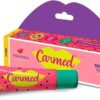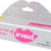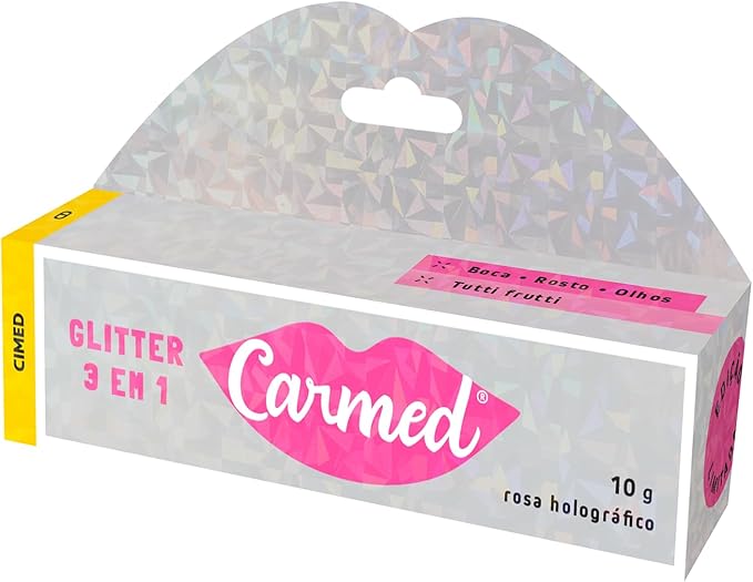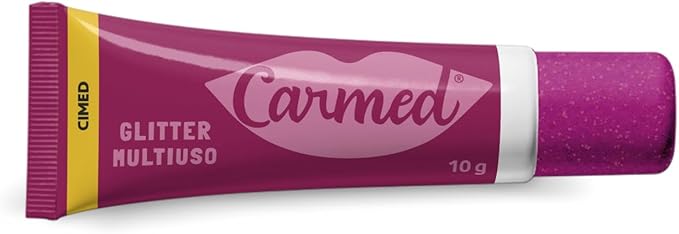 Carmed Glitter é uma maquiagem 3 em 1, que contém em sua formulação componenetes que mantêm os lábios macios, protegidos e hidratados. A aplicação permite o uso como batom,blush ou sombra.