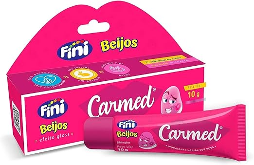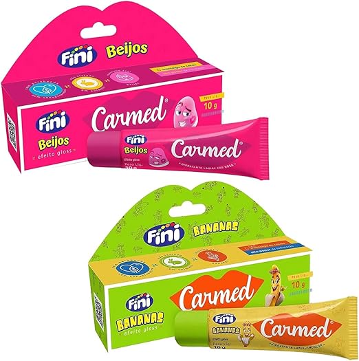 Carmed Fini é um hidratante labial com alto poder de hidratação e evita rachaduras, deixando os lábios macios e saudáveis. É incolor e possui efeito gloss e aroma de Fini Beijos e Bananas. Sua fórmula conta com manteiga de cacau e não contém parabenos, conservantes e teste em animais.