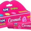 Carmed Fini Beijos é um hidratante labial com alto poder de hidratação e evita rachaduras, deixando os lábios macios e saudáveis. É incolor e possui efeito gloss e aroma de Fini Beijos. Sua fórmula conta com manteiga de cacau e não contém parabenos, conservantes e teste em animais.